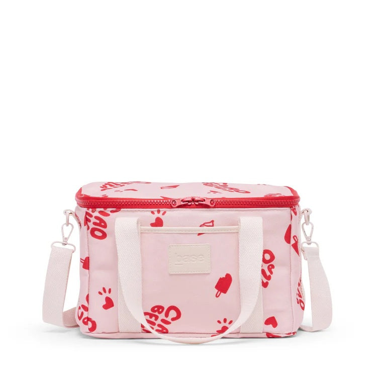 Add coastal cool to your beachside essentials. Compact cooler made from durable water resistant fabric perfectly sized to hold bottles, cans and snacks. Considered details like the chunky zip closure and outside pockets keep things cool and contained. Removable and adjustable cotton crossbody strap makes for convenient carrying.