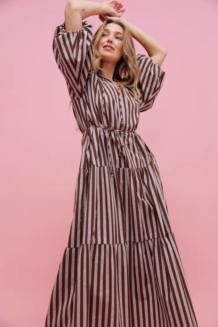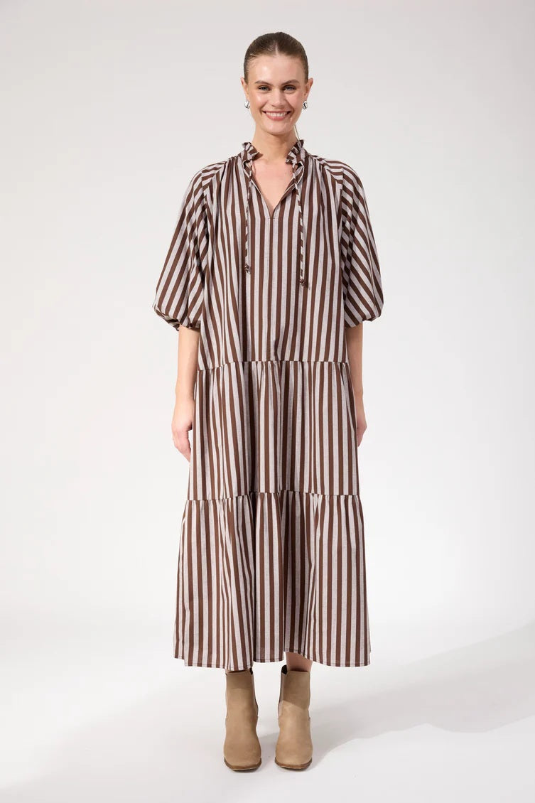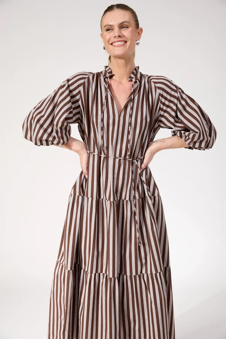 Haven - Monterosa Stripe Maxi Dress Brown