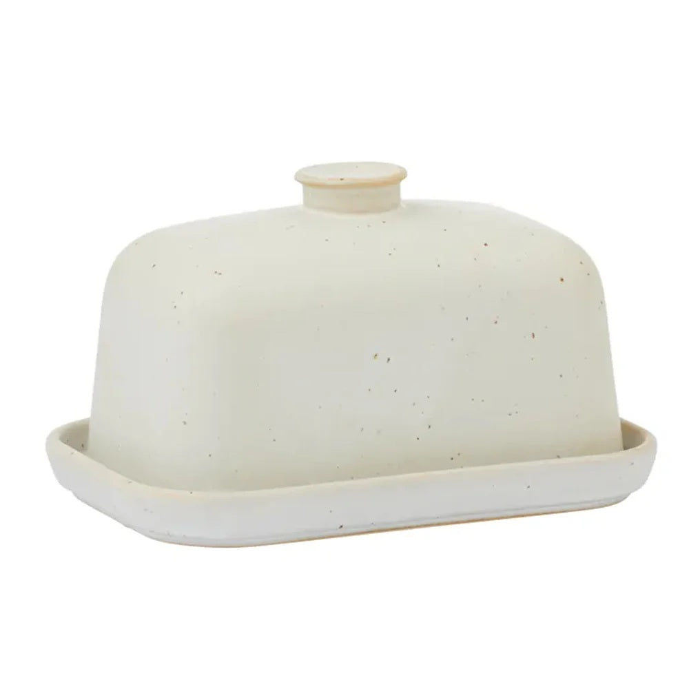 Perfectly complementing our Francis tableware collection, this pleasantly practical butter dish features a speckled glaze, curved dish and handled lid, ideal for the storing and easy spreading of butter.