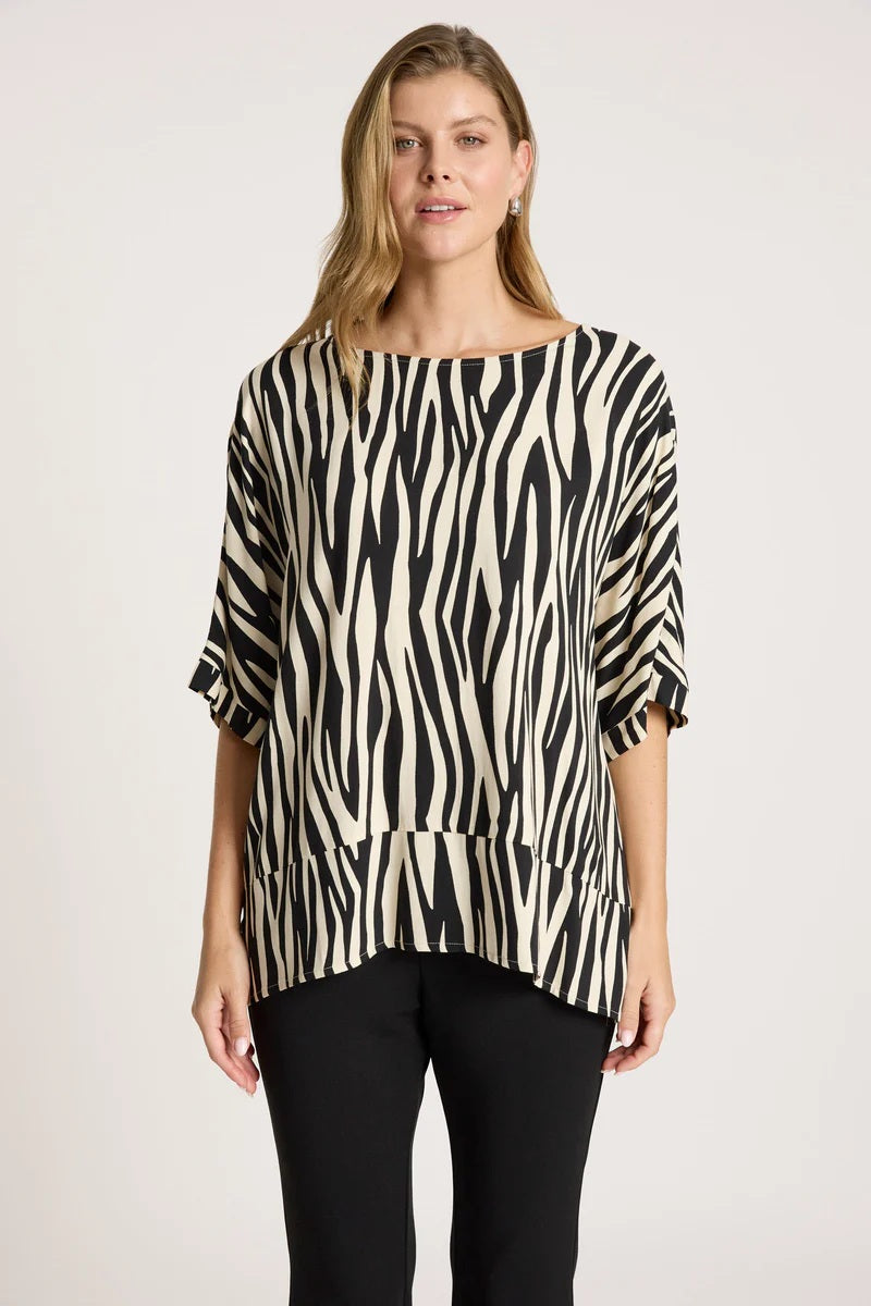 A softly draped top crafted with a subtle sheen. Designed in a relaxed One Size silhouette with a wide hem detail that offers gentle shape. Lightweight, versatile and ideal for easy layering.